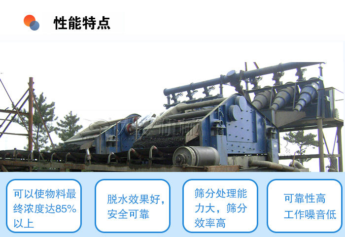 1、濃縮型水力旋流器多頻脫水篩,可以使物料濃度達85%以上;