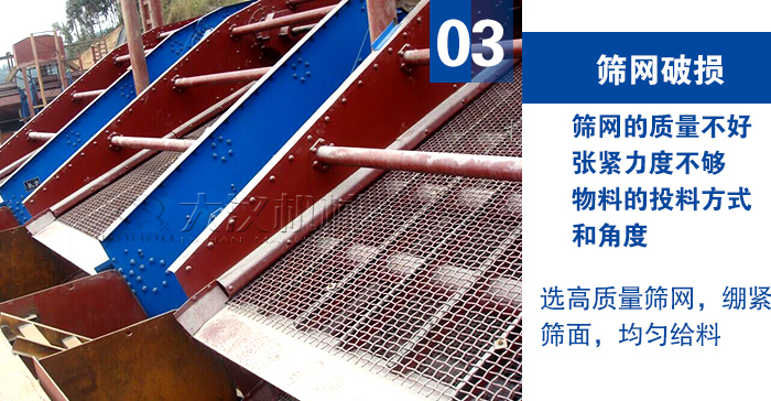 解決方法:① 需要選擇高質量的圓振動是啊篩網。② 在安裝篩面時,需要盡量將篩面繃緊。③ 均勻給料,控制給料速度。