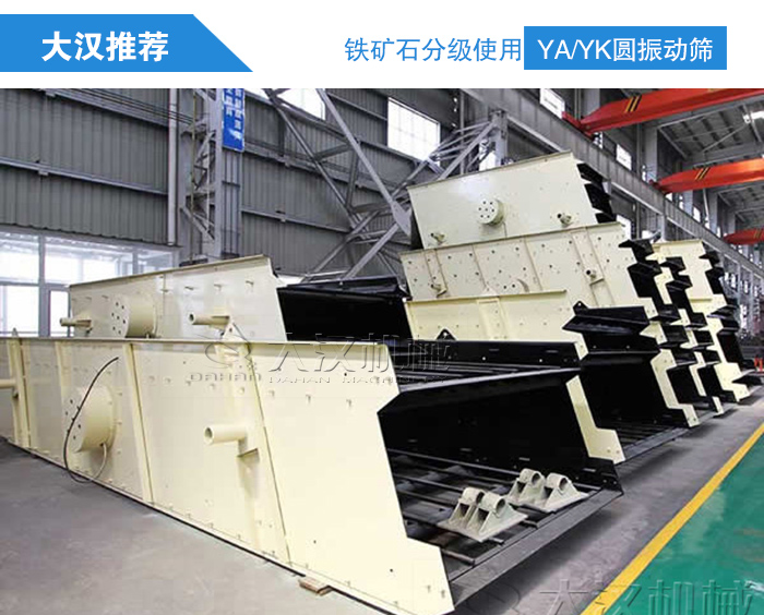 鐵礦石是鋼鐵生產企業的重要原材料,鐵礦石在經過破碎時候需要經過振動篩篩分已獲得不同粒度要求的成品,那么鐵礦石分級使用哪種振動篩比較好了,大漢廠家在這里向您推薦我們的YA/YK圓振動篩。